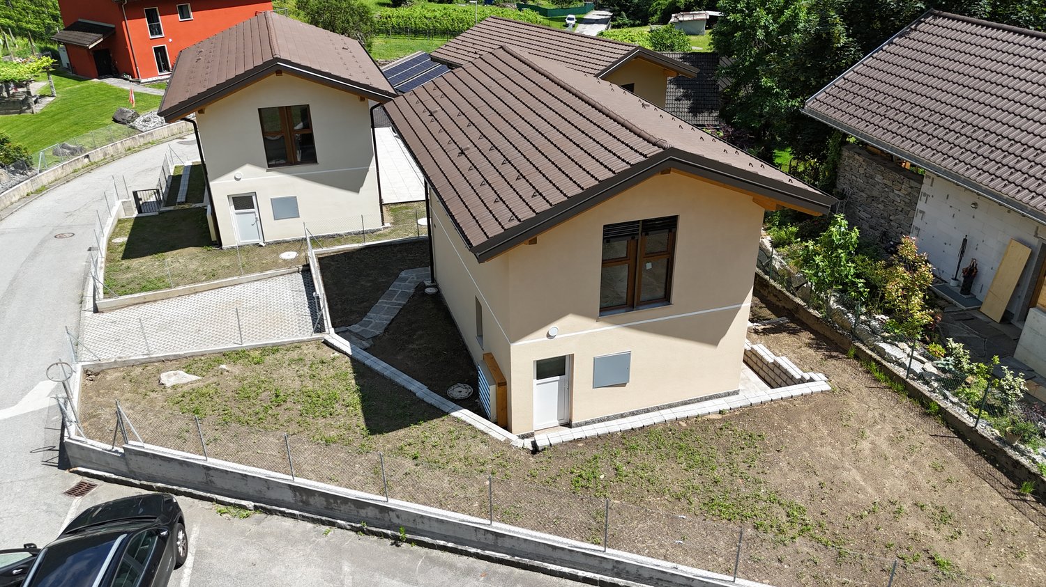 La villetta ancora disponibile si colloca in Via Altirolo, a poca distanza dalla Piazza Lavatoio nel nucleo alto del paese; in soli 10 minuti si raggiunge lo svincolo autostradale di Biasca.Il nuovo quartiere è composto da 3 villette unifamiliari ideali per la famiglia, ottimamente inserite nel terreno: Particolare attenzione è stata data alla ricerca della privacy tra di esse, tale obiettivo è stato raggiunto grazie alla tipologia progettuale dell’insediamento.Le abitazioni si sviluppano su due livelli che ben armonizzano lo spazio abitabile, ottenendo il massimo rendimento grazie al volume architettonico applicato.L’edificio è realizzato in stile costruttivo tradizionale, con elementi in beton ed in muratura, con isolazione termica delle facciate e tetto a falde.Particolare attenzione è stata data agli aspetti energetici: Termostato a regolazione individuale per ogni locale, termopompa aria/acqua, distribuzione calore con serpentine a bassa temperatura posate a pavimento.Lo spazio abitabile si presenta molto accattivante, viene valorizzato sia dall’altezza dei soffitti che dalla tipologia del tetto eseguito in legno a vista.La zona giorno si presenta come Open Space, con moderna cucina ben arredata, soggiorno con accesso alla terrazza ed al giardino.La zona notte si offre con il disimpegno che conduce alla camera padronale ed alle altre due camere singole, doppi servizi entrambi finestrati con vasca da bagno e con cabina doccia ed allacciamento per la colonna lava asciuga.Il locale esterno è adibito ad uso deposito e comprende l’impianto di riscaldamento.Lo spazio esterno è molto gradevole, il giardino è pianeggiante e completamente recintato, dal cancello si raggiungono i 2 posti auto coperti.