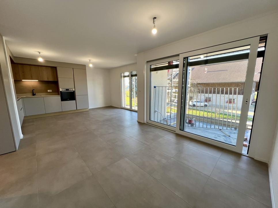 Attraktives Wohnen in Lyss Entdecken Sie diese geräumige Wohnung mit 4,5 Zimmern im ersten Stock eines modernen Neubaus aus dem Jahr 2025 in Lyss. Mit 111,5 m² Wohnfläche bietet diese rollstuhlgerechte Wohnung höchsten Komfort und modernes Wohnen.Die Wohnung überzeugt mit: • Geräumige Raumaufteilung: 4,5 helle Räume mit optimaler Raumnutzung • Zwei moderne Badezimmer: Komfortabel für tägliche Bedürfnisse ausgestattet • Privater Balkon: Mit atemberaubenden Ausblicken zur Entspannung und zum Genuss • Moderne Ausrüstung: Geschirrspüler, Kabelfernsehen und Aufzug im Gebäude • Parken: Bequemes Parken direkt vor und im Haus Perfekte Lage: Die Wohnung befindet sich in einer ruhigen Umgebung und ist dennoch optimal angebunden. Der Bahnhof Lyss ist nur 3 Minuten zu Fuß entfernt, ebenso wie die Bushaltestelle des Bahnhofs Lyss. Für den täglichen Bedarf finden Sie einen Lidl-Supermarkt nur drei Gehminuten entfernt. Der Bahnhof-Apotheke und BWZ Lyss sind ebenfalls in 4 Minuten erreichbar.Das moderne Mehrfamilienhaus mit vier Stockwerken beeindruckt mit seinen weißen Fassaden, mehreren Balkonen und grüner Umgebung mit vielen Bäumen. Dank der sonnigen Lage genießen Sie viel Tageslicht, und die ruhige Lage sorgt für entspanntes Wohnen.Diese kinderfreundliche Wohnung ist ideal für Familien oder Paare, die modernen Komfort mit exzellenter Infrastruktur verbinden möchten. Verfügbar ab September 2026 - sichern Sie sich jetzt Ihr neues Zuhause in Lyss!